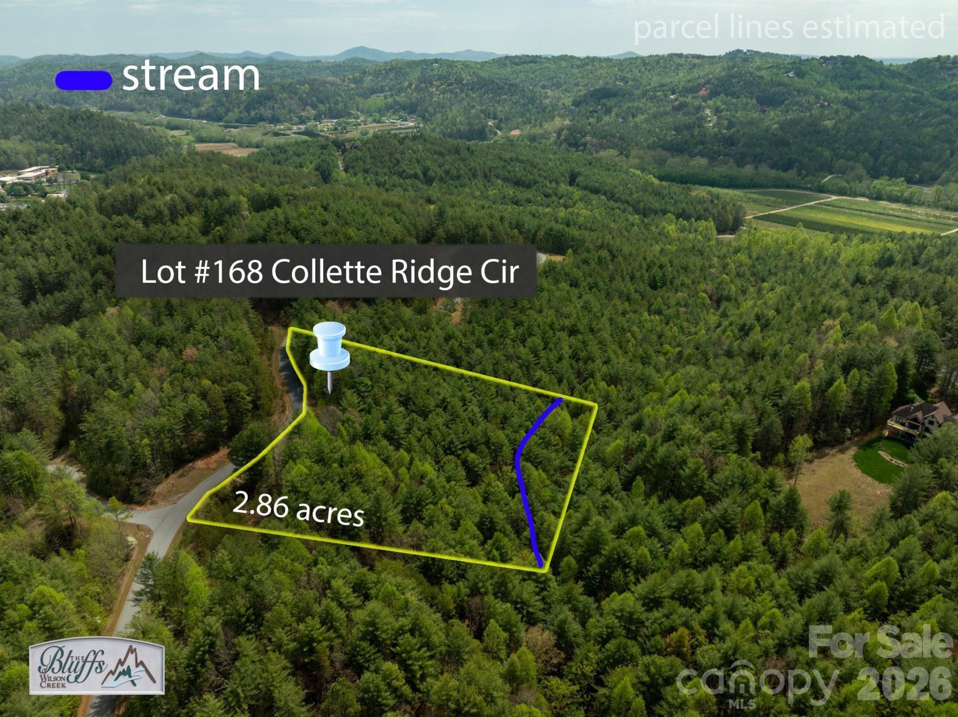 Escape to the mountains and enjoy the serenity of The Bluffs of Wilson Creek with this beautiful 2.86-acre lot. Tucked within a peaceful, gated community, this property offers multiple potential building sites, giving you the flexibility to design your ideal mountain retreat or full-time residence.A gentle stream meanders through the property, adding charm and the soothing sounds of nature right outside your door. Just minutes from Wilson's Creek, you'll find endless opportunities for hiking, fishing, kayaking, and exploring the natural beauty of the North Carolina mountains.Whether you're looking for a private getaway or a base to enjoy all the area has to offer, this lot provides the perfect blend of seclusion, scenery, and convenience. Experience the relaxing lifestyle of The Bluffs of Wilson Creek and make your mountain dream a reality.